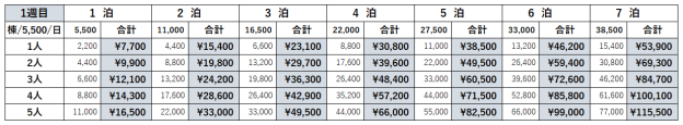 ※宿泊料金は一棟料金+人数料金の合計となります。(最大5名、人数が多いほどお得です!)