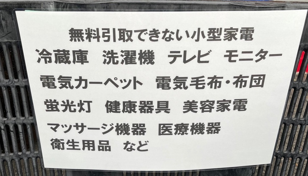 商品によってはお受けできない品物もありますので、ボックスに貼られている注意書きをご確認くださいね。