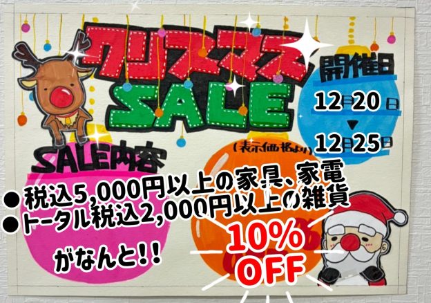 東京多摩地区のリサイクルセンターアールワン全店舗ではサンタさんの来日に合わせてクリスマスセールを開催中です!